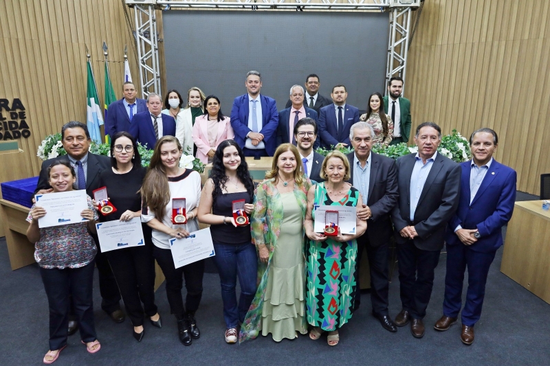 Homenageados entre as autoridades durante a sessão solene (Foto: Daniel Silva/DICOM)