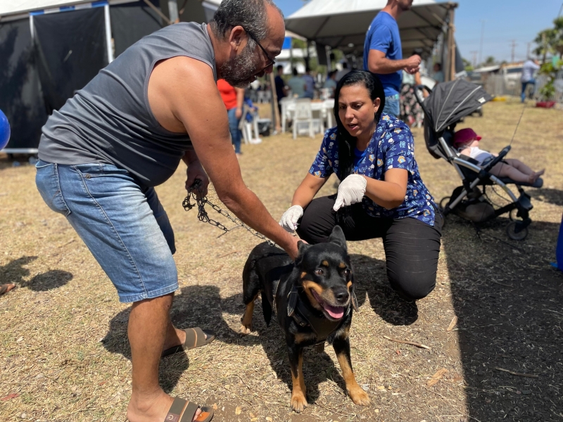Em torno de 100 pets foram vacinados durante a ação (Foto: DICOM)