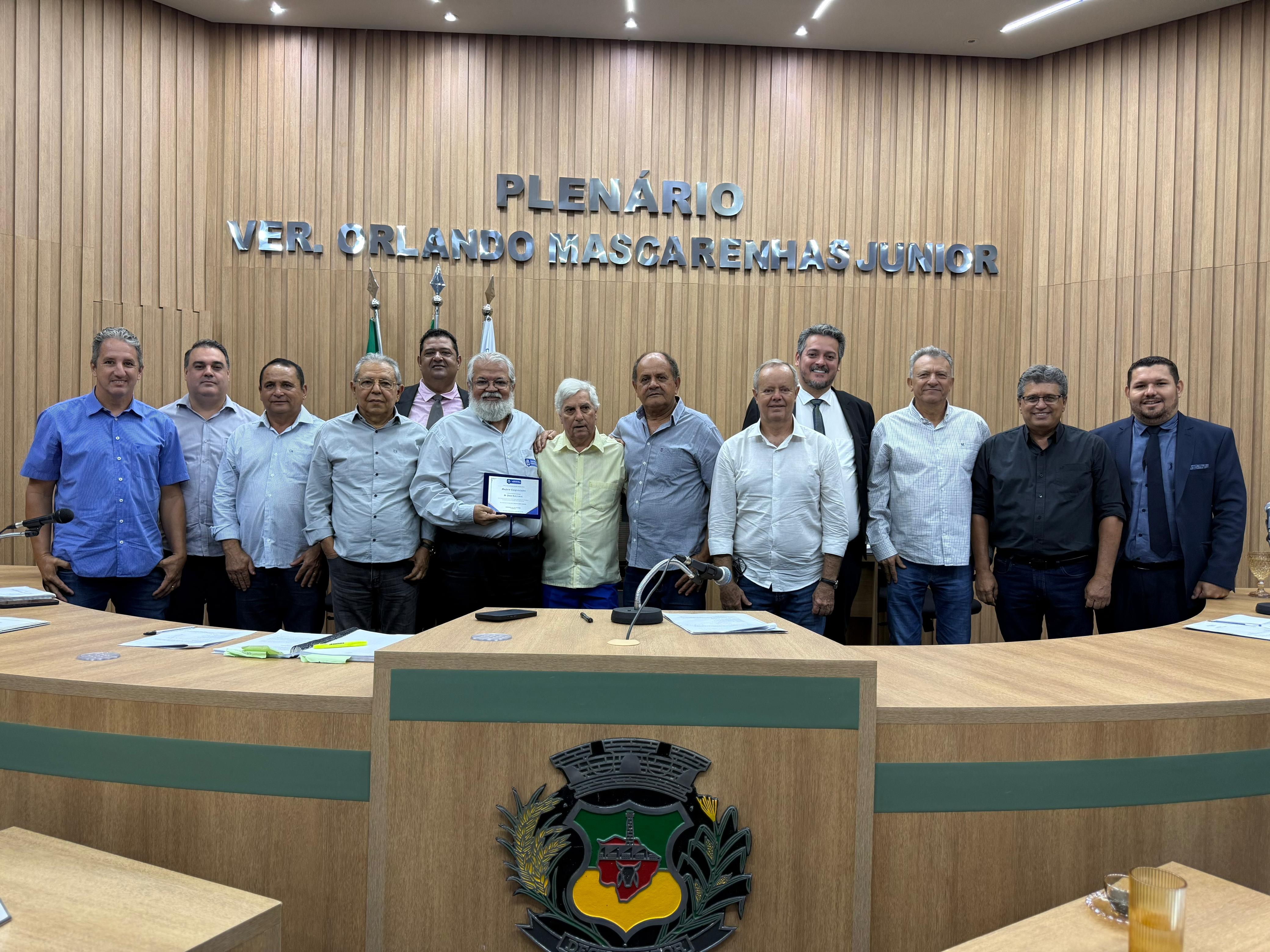 A moção de congratulações foi proposta pelo presidente da Câmara, vereador Ber Galter (PSDB), e aprovada por unanimidade pelos demais parlamentares. Antes da entrega da honraria, Ber convidou ex-presidentes da Câmara para participarem do momento solene.